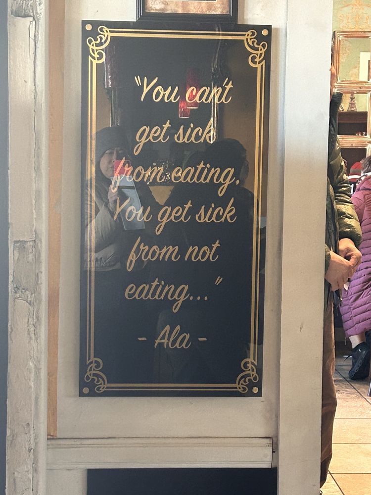 Eggs, bacon, American cheese, lettuce, tomato, and mayo on our famous, daily baked butter croissant.